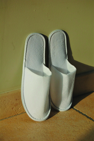 Geschlossenes Paar Hausschuhe aus Polyesterfrottee 160g-m², rutschfeste Sohle