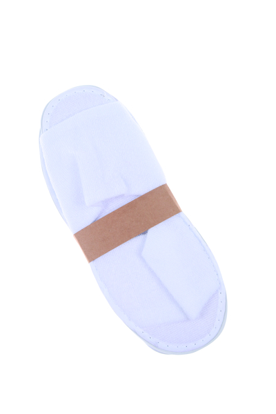 Sie können den Hygienestreifen mit einem Aufkleber mit Ihrem Namen/Logo versehen, um Ihre Hausschuhe noch persönlicher zu gestalten.