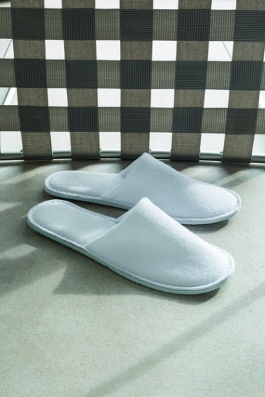Diese Frottee-Hausschuhe (200 g/m²) sind mit 2 mm Schaumstoff an Obermaterial und Sohle gefüttert und bieten höchsten Tragekomfort.
