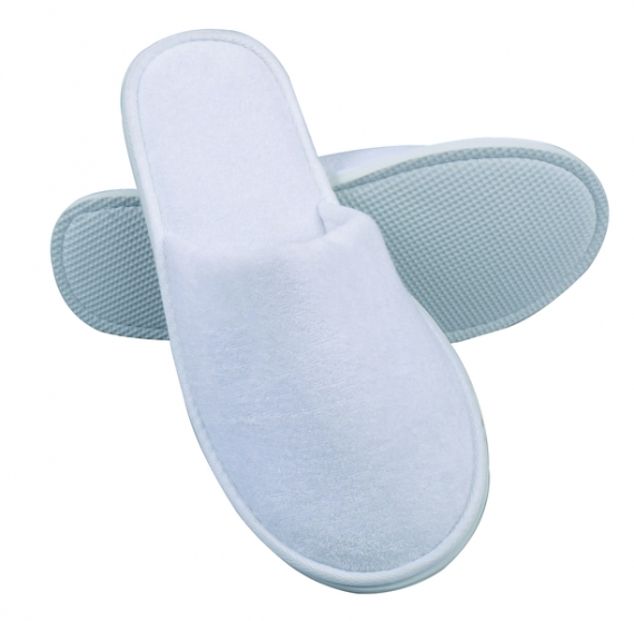 Geschlossenes Paar Hausschuhe aus Polyesterfrottee 160g-m², rutschfeste Sohle