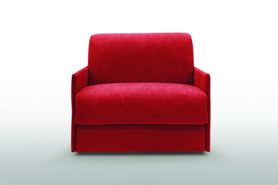 Ausziehsessel, 1 Person, L 99 x B 96 x H 90 cm Matratze Komfort Armlehnen L 3,5 cm Schlafplatz 1 Person, 70 x 197 cm melierter Stoff Farbe rot aufgeklappt 99 x 212 cm Kollektion Pari