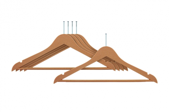 Antivolles Kleiderbügel, aus Maisstärke und Sägemehl mit Stange Naturholz