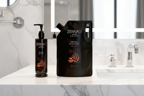 Das dezente Design des Beutels erinnert an die ZENNAO DOLCE Pumpflaschen und erleichtert dem Reinigungspersonal die Identifizierung der richtigen Flasche beim Nachfüllen.