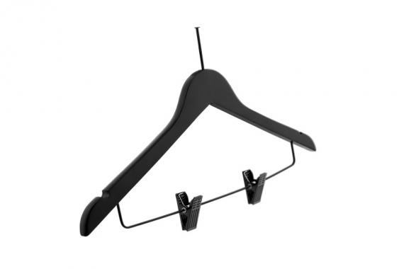 Diebstahlsicherer Kleiderbügel aus Ahornholz mit Klammern und schwarzem Haken Mattschwarz