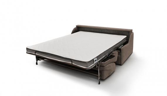 Der Easy Open-Express-Öffnungsmechanismus ermöglicht ein ganz einfaches Öffnen des Bettes, indem die Rückenlehne zu sich gezogen wird, ohne die Kissen zu entfernen. Das Sofa faltet sich dann automatisch nach vorne und die Matratze mit dem bereits verlegten Spannbettlaken und Bettlaken erscheint. Dazu müssen lediglich die Kissen aus dem in der Rückenlehne befindlichen Kofferraum und die Bettdecke des Schranks entfernt werden. Jedes Modell hat eine Sitztiefe von 59 cm und eine Sitzhöhe von 48 cm.