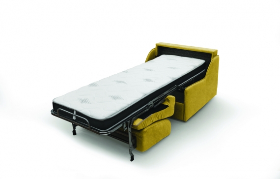 Der Easy Open-Express-Öffnungsmechanismus ermöglicht ein ganz einfaches Öffnen des Bettes, indem die Rückenlehne zu sich gezogen wird, ohne die Kissen zu entfernen. Das Sofa faltet sich dann automatisch nach vorne und die Matratze mit dem bereits verlegten Spannbettlaken und Bettlaken erscheint. Dazu müssen lediglich die Kissen aus dem in der Rückenlehne befindlichen Kofferraum und die Bettdecke des Schranks entfernt werden. Jedes Modell hat eine Sitztiefe von 59 cm und eine Sitzhöhe von 48 cm.