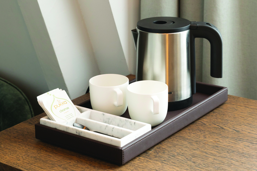 Dieser AURA-Wasserkocher ist in gebürstetem Stahl oder mattschwarz erhältlich und beide Modelle sind mit unseren diebstahlsicheren Bambustabletts €058.9010.01 & #058.9010.02 kompatibel.
