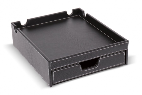 Synthetic leather drawer tray beige veined, Sellier stitching