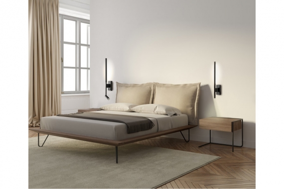 Dual function: ambient lighting 6W + integrated LED reading light 3W. Adjustable reading light with 360° rotation for optimal comfort. Warm LED light 3000K, 410 + 210 lm. Available in two elegant finishes: matt white or matt black. Ideal for hotel rooms, headboards, and reading areas.