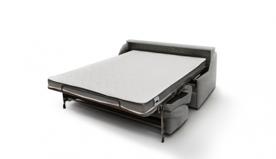 The Easy Open express opening mechanism allows the bed to be opened very easily by pulling the backrest towards you without removing the cushions. The sofa will then automatically unfold forward and the mattress with the fitted sheet and flat sheet already installed will appear. All you have to do is take the pillows out of the trunk located in the backrest and the duvet of the cupboard.Each model has a seat depth of 59 cm and a seat height of 48 cm.