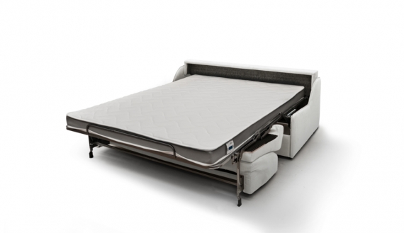 The Easy Open express opening mechanism allows the bed to be opened very easily by pulling the backrest towards you without removing the cushions. The sofa will then automatically unfold forward and the mattress with the fitted sheet and flat sheet already installed will appear. All you have to do is take the pillows out of the trunk located in the backrest and the duvet of the cupboard.Each model has a seat depth of 59 cm and a seat height of 48 cm.