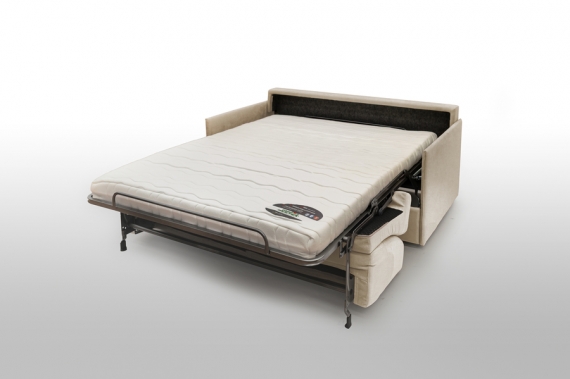 The Easy Open express opening mechanism allows the bed to be opened very easily by pulling the backrest towards you without removing the cushions. The sofa will then automatically unfold forward and the mattress with the fitted sheet and flat sheet already installed will appear. All you have to do is take the pillows out of the trunk located in the backrest and the duvet of the cupboard.Each model has a seat depth of 59 cm and a seat height of 48 cm.