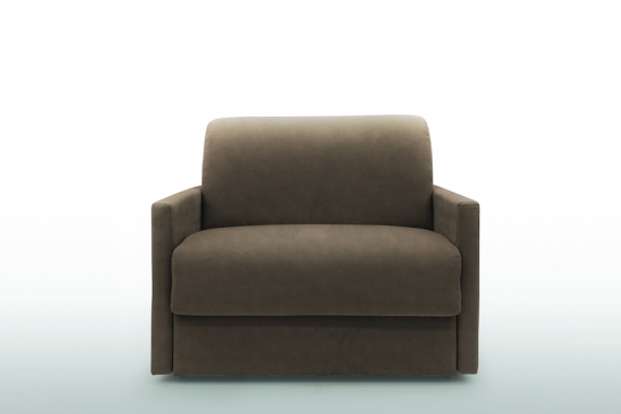 1-seater sleeper armchair W 106 x D 96 x H 90 cm comfort mattress Armrests W 7 cm single bed 70 x 197 cm in brown velvet fabric, unfolded 106 x 212 cm from the London Collection