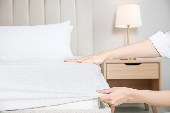 Fitted sheet - 60 thread count white Seersucker polycotton 90 x 190 x 23 cm