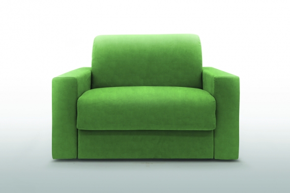 1-seater sleeper armchair W 126 x D 96 x H 90 cm Classic mattress Armrests W 17 cm single bed 70 x 197 cm in green velvet fabric, unfolded 126 x 212 cm from the Berlin Collection