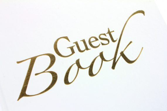 Guestbook 144 pages with Skivertex white cover and golden letters