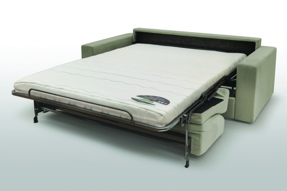 The Easy Open express opening mechanism allows the bed to be opened very easily by pulling the backrest towards you without removing the cushions. The sofa will then automatically unfold forward and the mattress with the fitted sheet and flat sheet already installed will appear. All you have to do is take the pillows out of the trunk located in the backrest and the duvet of the cupboard.Each model has a seat depth of 59 cm and a seat height of 48 cm.