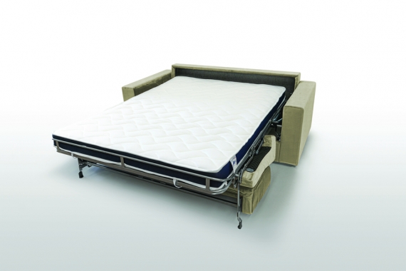 The Easy Open express opening mechanism allows the bed to be opened very easily by pulling the backrest towards you without removing the cushions. The sofa will then automatically unfold forward and the mattress with the fitted sheet and flat sheet already installed will appear. All you have to do is take the pillows out of the trunk located in the backrest and the duvet of the cupboard.Each model has a seat depth of 59 cm and a seat height of 48 cm.