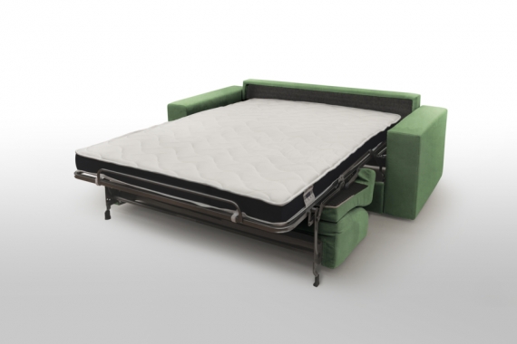 The Easy Open express opening mechanism allows the bed to be opened very easily by pulling the backrest towards you without removing the cushions. The sofa will then automatically unfold forward and the mattress with the fitted sheet and flat sheet already installed will appear. All you have to do is take the pillows out of the trunk located in the backrest and the duvet of the cupboard.Each model has a seat depth of 59 cm and a seat height of 48 cm.