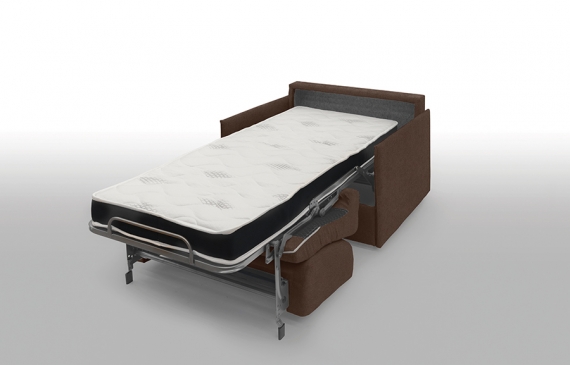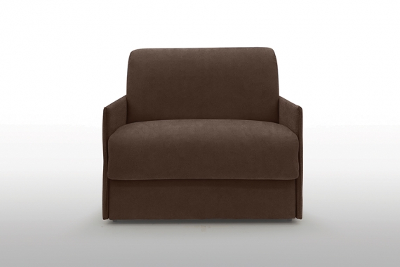 1-seater comfort sleeper armchair W 119 x D 96 x H 90 cm comfort mattress Armrests W 3.5 cm single bed 90 x 197 cm in brown leather, unfolded 119 x 212 cm from the Paris Collection