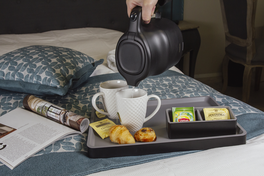 The courtesy tray with kettle is a small item that makes all the difference in your hotel room. It is a delicate and warm attention to your visitors. Indeed, the courtesy tray allows you to offer everything you need to allow customers... The courtesy tray with kettle is a small item that makes all the difference in your hotel room. It is a delicate and warm attention to your visitors. Indeed, the courtesy tray allows you to offer everything you need to allow customers to make tea, coffee, and even make some cookies or other delicacies available. Find out more The courtesy tray with kettle is a small item that makes all the difference in your hotel room. It is a delicate and warm attention to your visitors. Indeed, the courtesy tray allows you to offer everything you need to allow customers to make tea, coffee, and even make some cookies or other delicacies available. Find out less