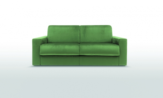 Canapé convertible 3 places l 196 x P 96 x H 90 cm Matelas Bultex Accoudoirs l 17 cm couchage 2 places 140 x 197 cm tissu velours coloris vert déplié 196 x 212 cm Collection Berlin