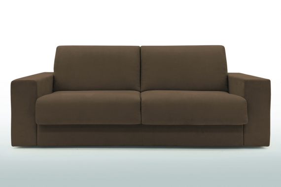 Canapé convertible 3 places confort l 224 x P 96 x H 90 cm Matelas classique Accoudoirs l 21 cm couchage 2 places 160 x 197 cm tissu suédine coloris chocolat déplié 224 x 212 cm Collection Dublin