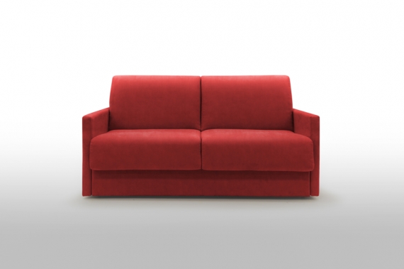 Canapé convertible 2 places confort l 156 x P 96 x H 90 cm Matelas Bultex Accoudoirs l 7 cm couchage 2 places 120 x 197 cm tissu velours coloris carmin déplié 156 x 212 cm Collection Londres
