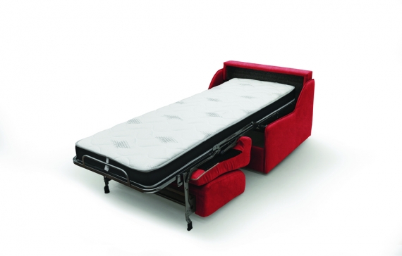 Fauteuil convertible 1 place confort l 119 x P 96 x H 90cm Matelas confort Accoudoirs bas l 3,5 cm couchage 1 place 90 x 197 cm tissu chiné coloris rouge déplié 119 x 212 cm Collection Madrid
