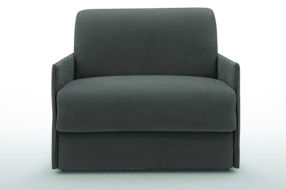 Fauteuil convertible 1 place confort l 119 x P 96 x H 90 cm Matelas classique Accoudoirs l 3,5 cm couchage 1 place 90 x 197 cm tissu suédine coloris gris ombre déplié 119 x 212 cm Collection Paris