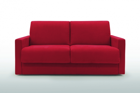 Canapé convertible 2 places confort l 166 x P 96 x H 90 cm Matelas Bultex Accoudoirs l 12 cm couchage 2 places 120 x 197 cm tissu suédine coloris rouge déplié 166 x 212 cm Collection Rome