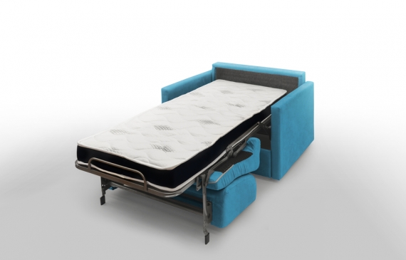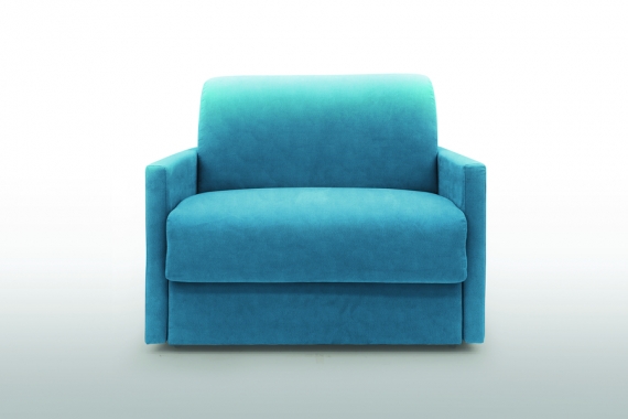Fauteuil convertible 1 place confort l 126 x P 96 x H 90 cm Matelas classique Accoudoirs l 7 cm couchage 1 place 90 x 197 cm tissu velours coloris canard déplié 126 x 212 cm Collection Londres