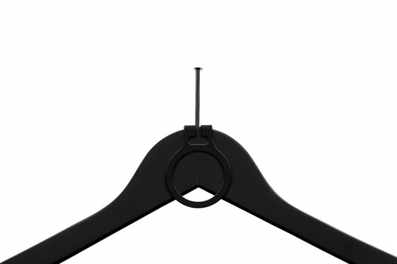 Ce cintre est proposé avec anneau antivol en métal de diamètre 38 mm, qui s'enfile sur la tringle après démontage de celle-ci.