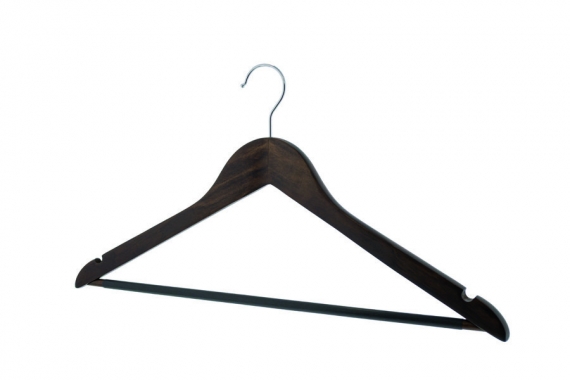 Cintre en érable crochet avec barre Wengé- PVC antidérapant sur tige