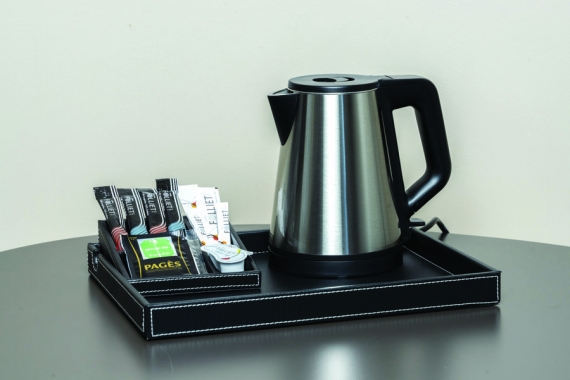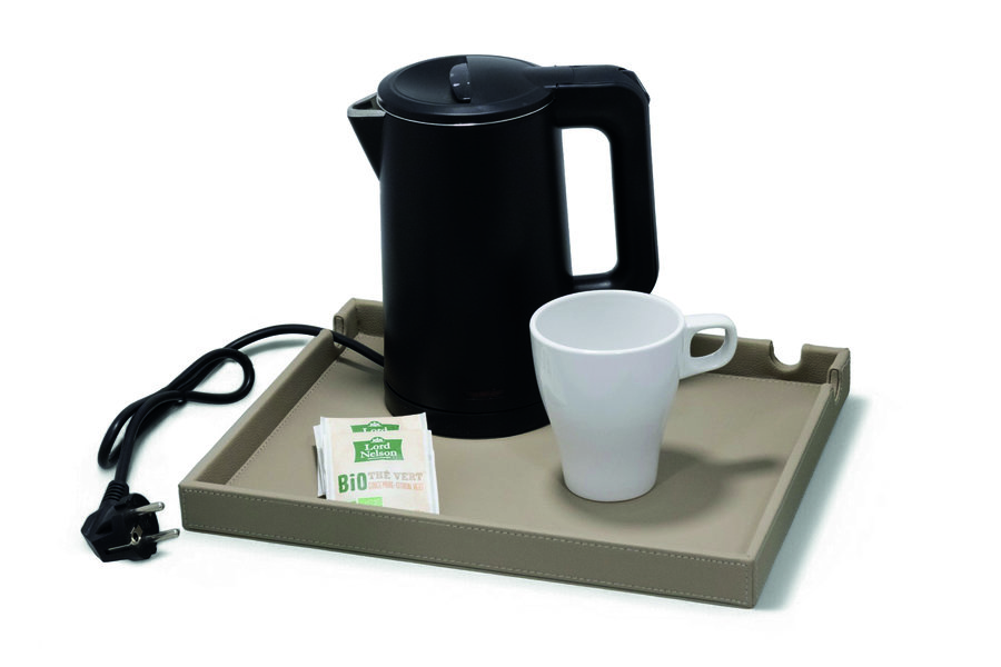 Plateau d'accueil en simili cuir compact veiné noir, piqûre sellier