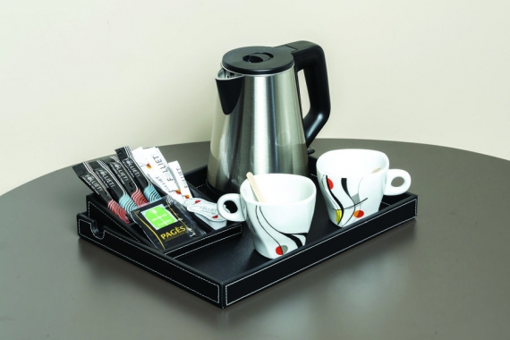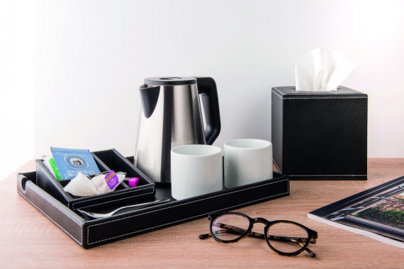Plateau porte-sachets en simili cuir veiné noir, piqûre sellier