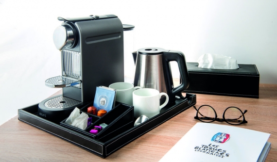 Porte-mouchoirs rectangulaire en simili cuir veiné noir, piqûre sellier