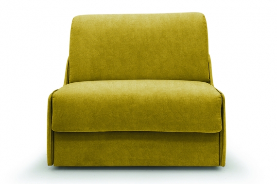 Fauteuil convertible 1 place confort l 119 x P 96 x H 90cm Matelas classique Accoudoirs bas l 3,5 cm couchage 1 place 90 x 197 cm tissu chiné coloris moutarde déplié 119 x 212 cm Collection Madrid
